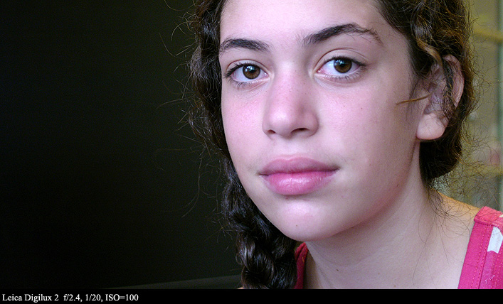 הגירעון העדין (כן, גם ברגישת 100 יש רעש קל שנראה במקומות האפלים בתמונה), הצבעים העשירים, גווני העור המדויקים, כל אלו באים לידי ביטוי בקובץ הבסיסי אותו מפיקה המצלמה. אחד הדברים האהובים עלי בצילום עם הדיגילוקס 2, היא העובדה שקבצי ה JPEG שלה כל כך "מבושלים" עד שאין כמעט צורך לטפל בהם בתוכנת עריכה אחרי הצילום. לצלם ב RAW זאת חוויה מפוקפקת למדי במצלמה הזאת – זמן הכתיבה של הקובץ ע"ג הכרטיס פשוט לא נגמר…