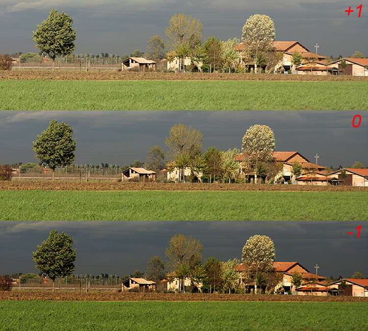 פיצוי חשיפה חיובי (+) יבהיר את התמונה, פיצוי חשיפה שלילי (-) יחשיך את התמונה.