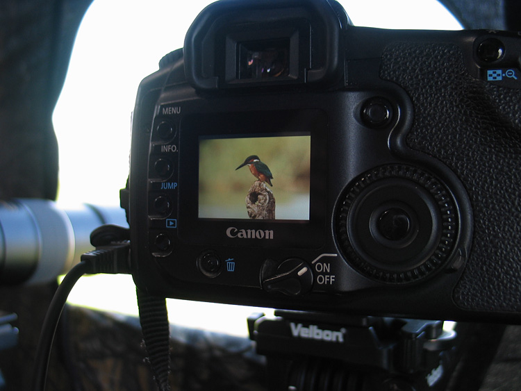 זהו זה, עשינו את חלקנו. אספנו מודיעין, בנינו מסתור, מיקמנו ענף מרשים בדיוק במרחק הנכון. במקביל, דאגנו שמיקומנו יהיה אופטימאלי ביחס לכיוון האור, בחרנו רקע נאה. כעת יש להיכנס למסתור (כדאי מאוד להביא כסא מתקפל, בירות, חטיפים, בחורות…צלמות כמובן!) צריך להעמיד את המצלמה על חצובה, להוציא את העדשה מבעד לאחד הפתחים ולעשות מספר ניסיונות. הניסיונות יתנו לנו מושג לגבי הפריים המתקבל – כיצד נראה הרקע? האם המרחק מהענף נכון? מהי מהירות התריס בתנאי האור הקיימים? אולי צריך להעלות ISO בכדי לקבל מהירות תריס גבוהה יותר, וכו'.